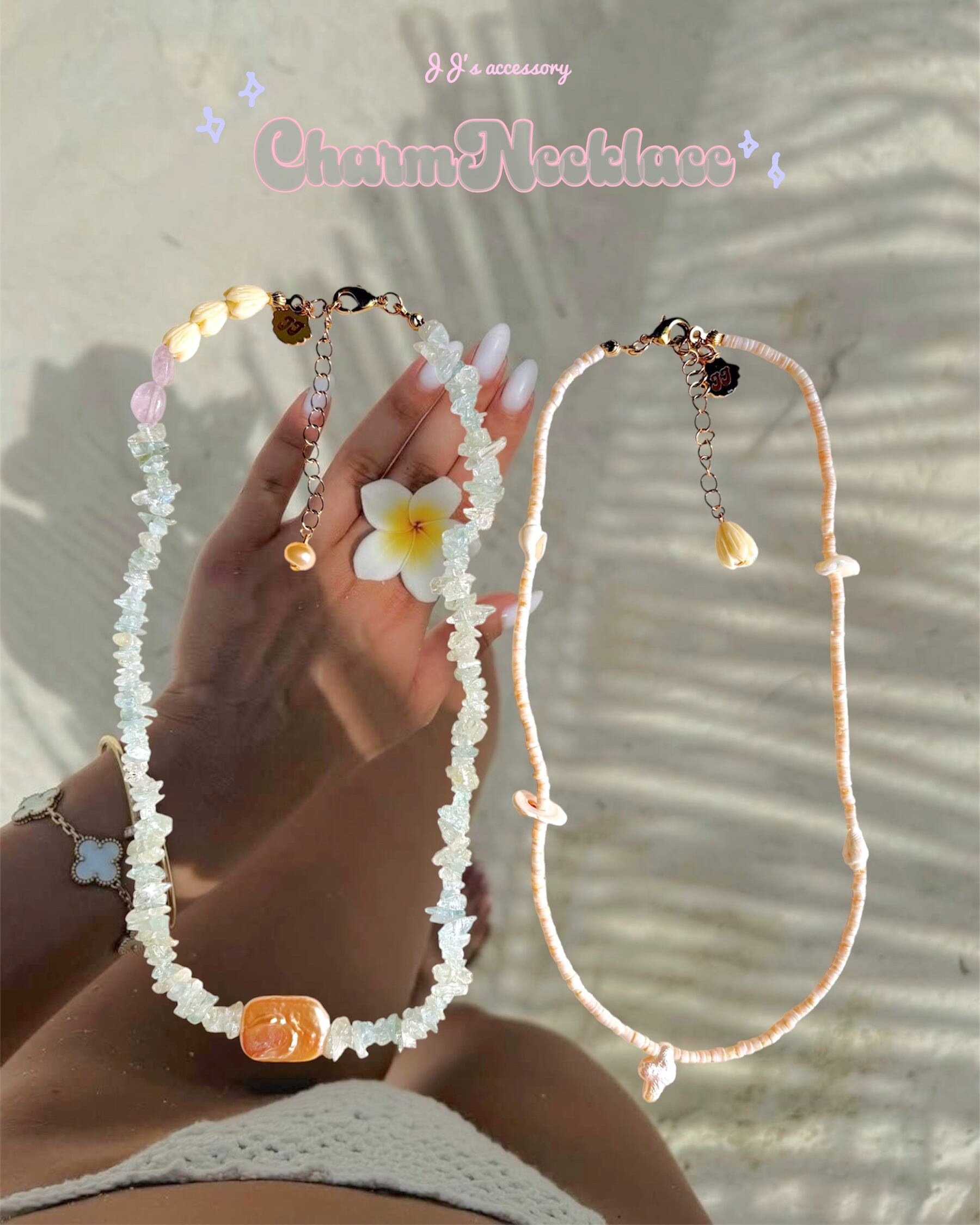 白い砂浜で拾ったような小さい貝たちの可愛いお守りネックレス♡ ̖́-